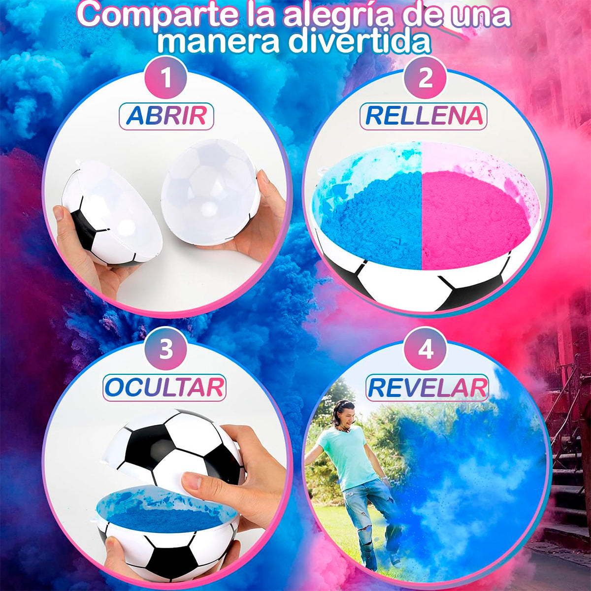 Convierte el momento en un recuerdo épico con una explosión de color azul o rosa. - 🎉 Ideal para baby showers o reuniones familiares