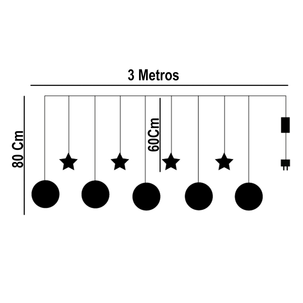 - Tamaño Aprox.: Largo: 3 m / Cantidad de tiras: 10 tiras / Caída de la tira: Larga: 80 cm - Corta: 60 cm / Cantidad de luces: 100 LEDS.