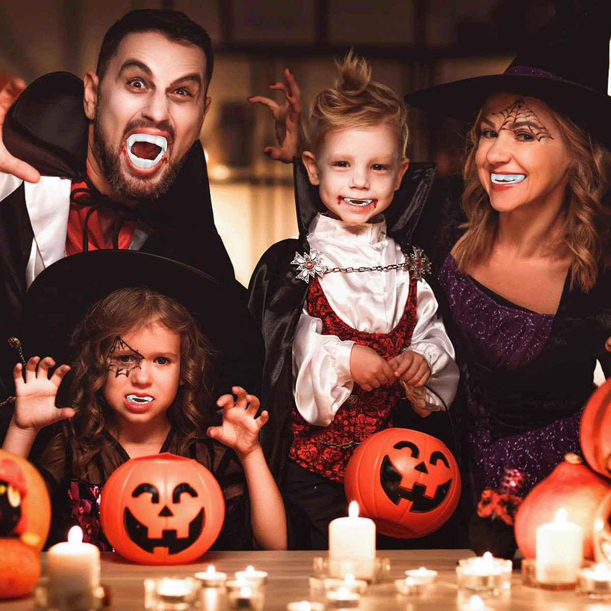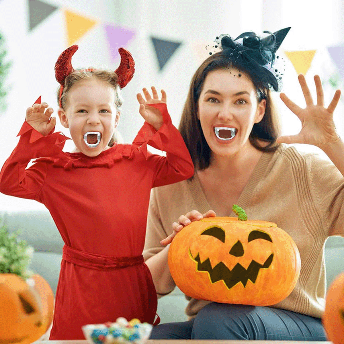 - Busca un disfraz más realista y original con estos dientes de vampiro.