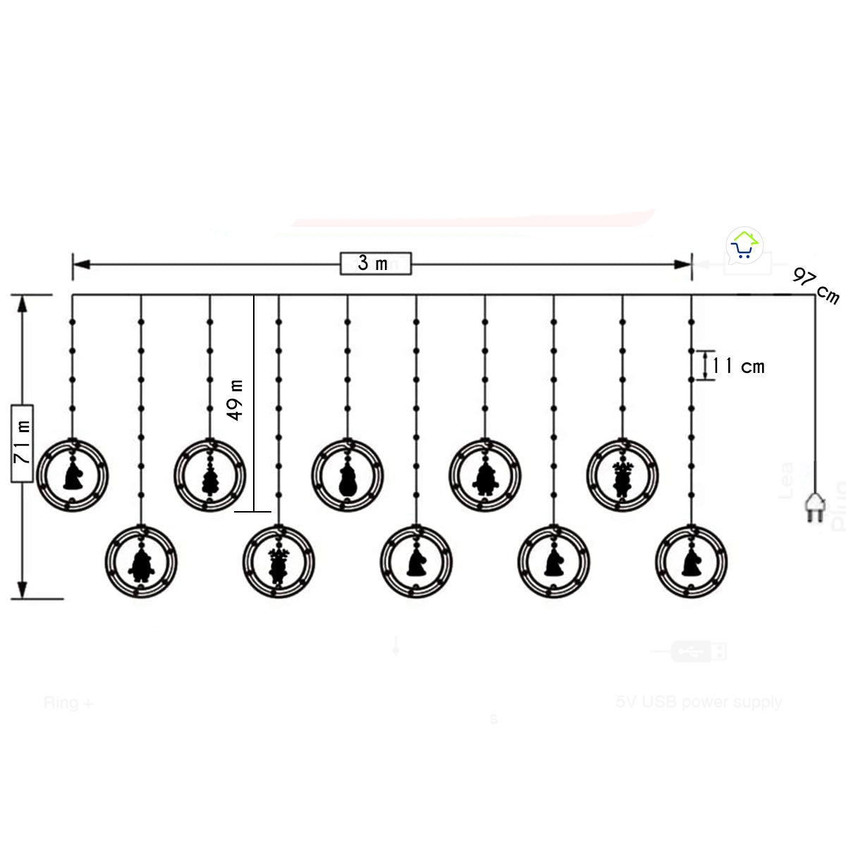 - Longitud luces: 3 metros de largo x 67.5 centímetros de caída.