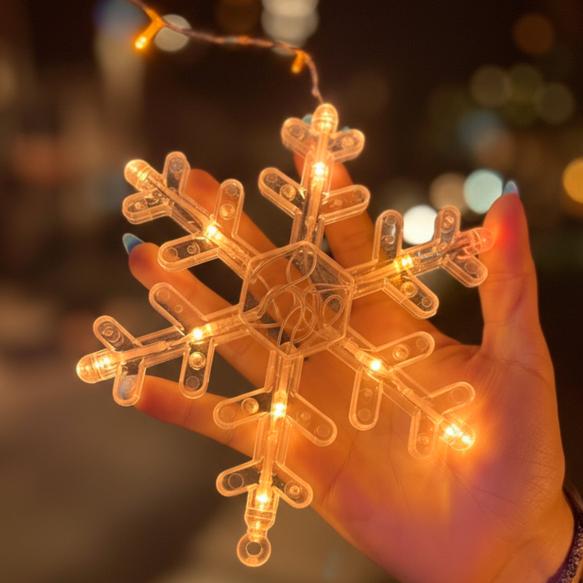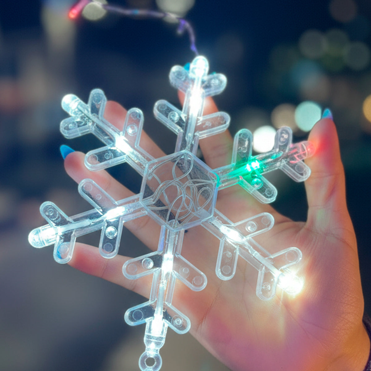 Perfecta para ventanas, balcones, terrazas, árboles de Navidad o celebraciones especiales, esta guirnalda combina el encanto de las estrellas con la delicadeza de los copos de nieve, ofreciendo un efecto luminoso realmente encantador.