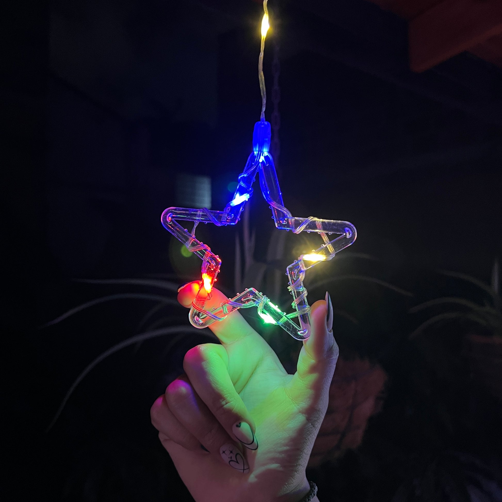 - Tamaño Aprox.: Largo: 3 m / Cantidad de tiras: 10 tiras / Caída de la tira: (Árbol) 75 cm - (Estrellas) 65 cm / Cantidad de luces: 130 LEDS. / Distancia entre tiras: 33 cm.
