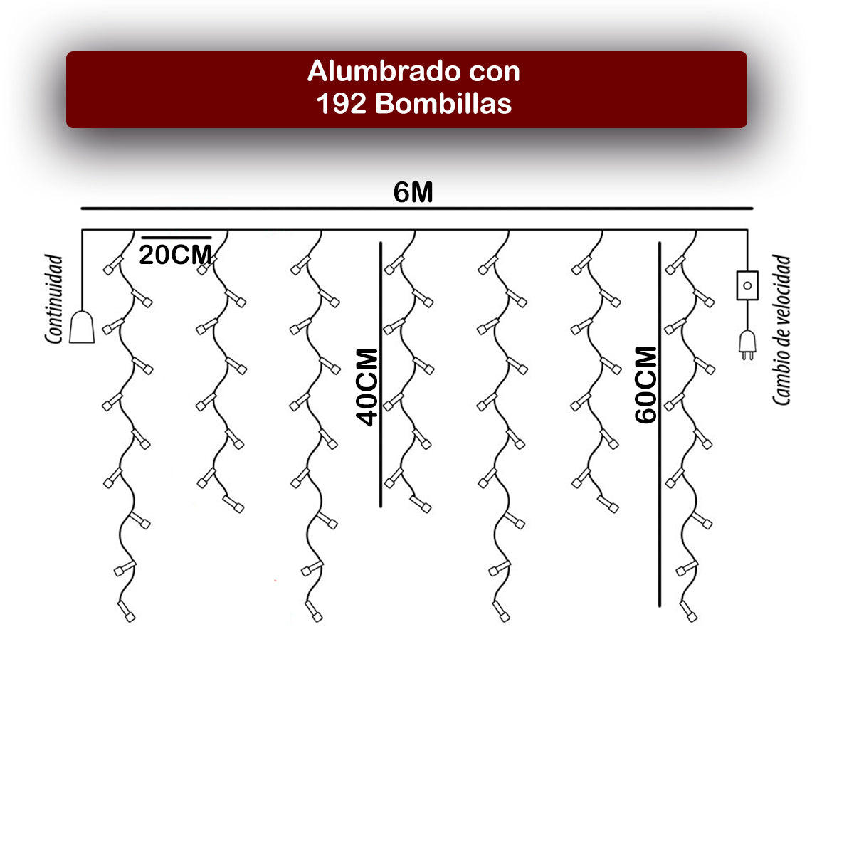 Cortina LED Intercalada 6 Metros 192 LED Decoración Navideña Interior Navidad AL-079
