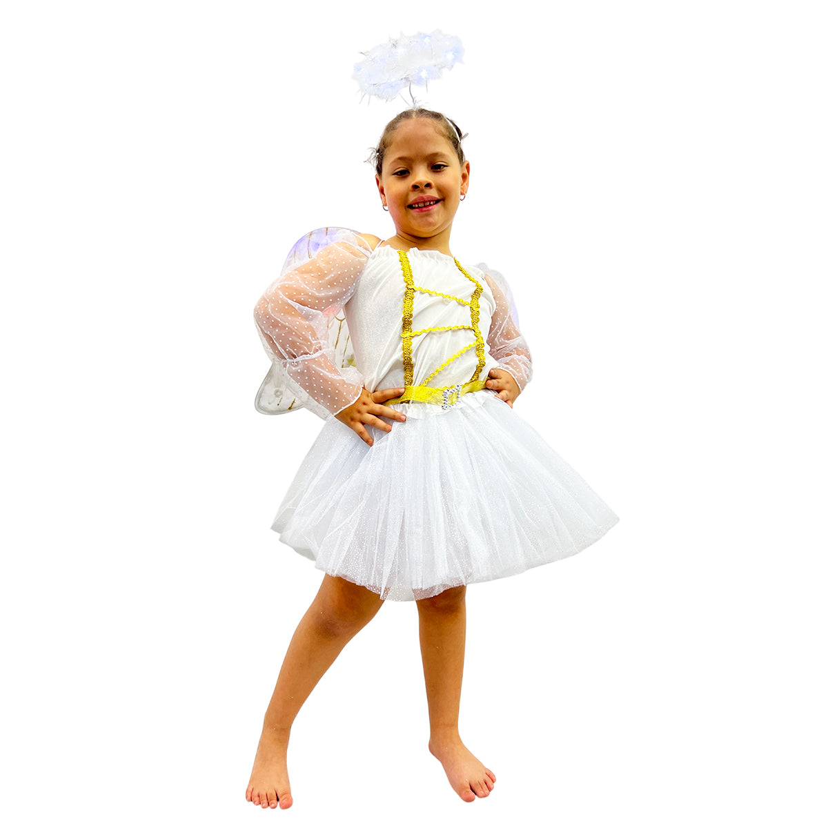 - 👼 Disfraz de ángel blanco con vestido elegante y falda de tul brillante