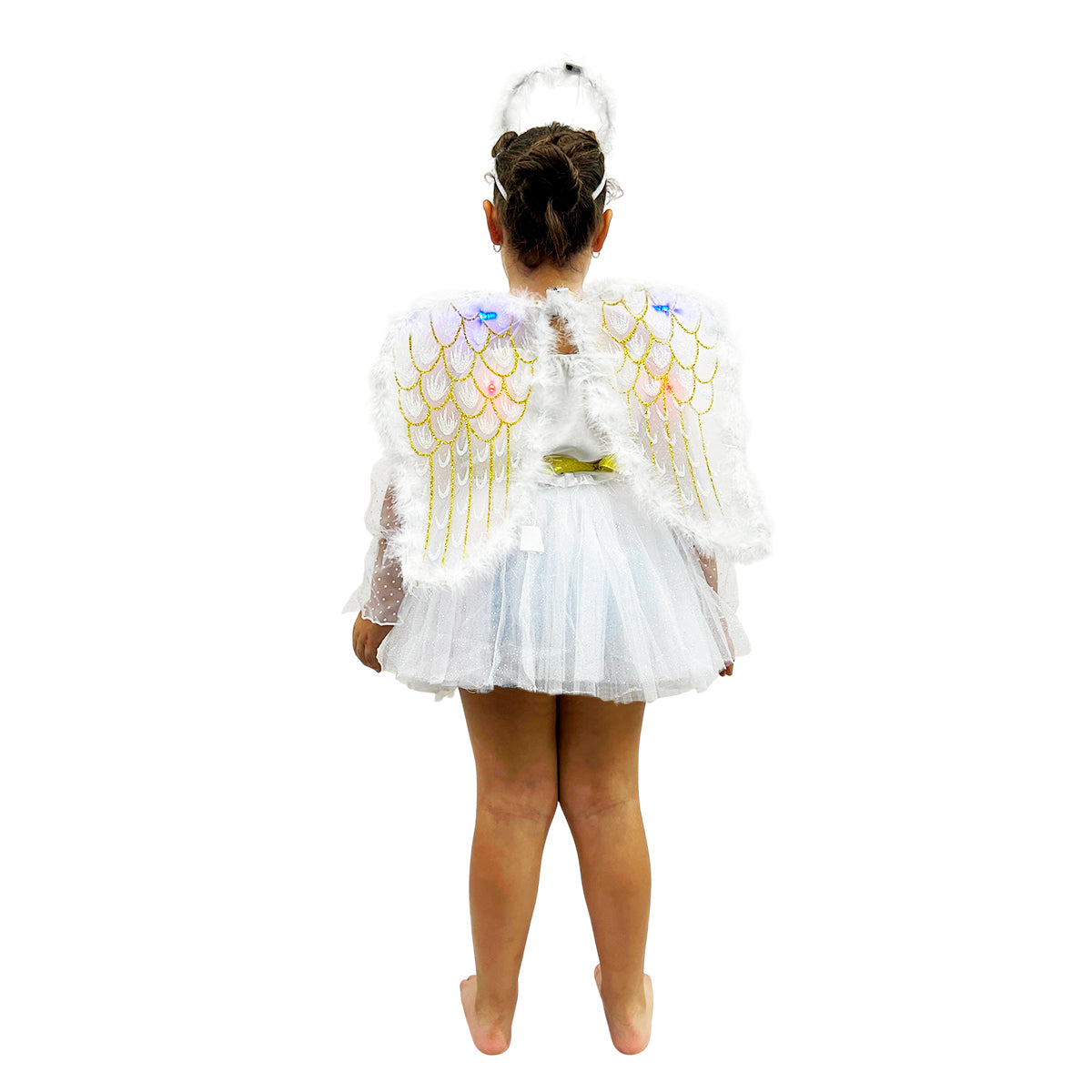 Disfraz De Ángel Blanco Con Alas Y Aureola Luces Niña Halloween DSANGBL