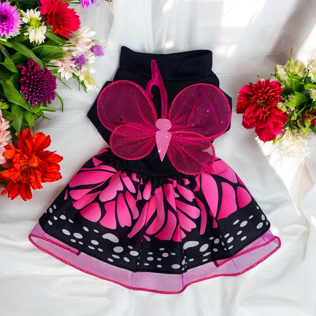 Hermoso disfraz con alas y vestido hermoso, ideal para que tu perrita sea toda una princesa hada mariposa, será la sensación de noche de brujas con sus alas de colores y el hermoso vestido.