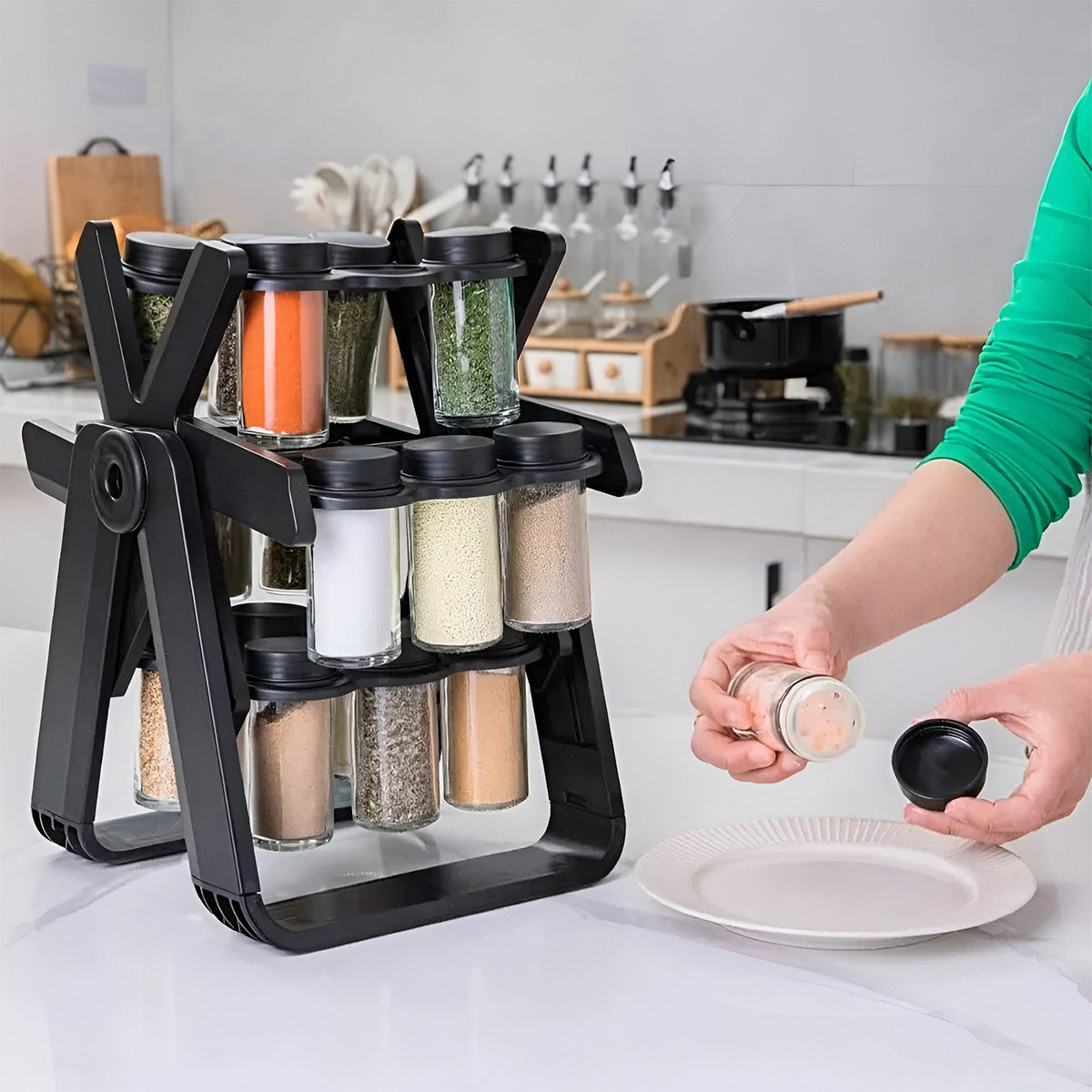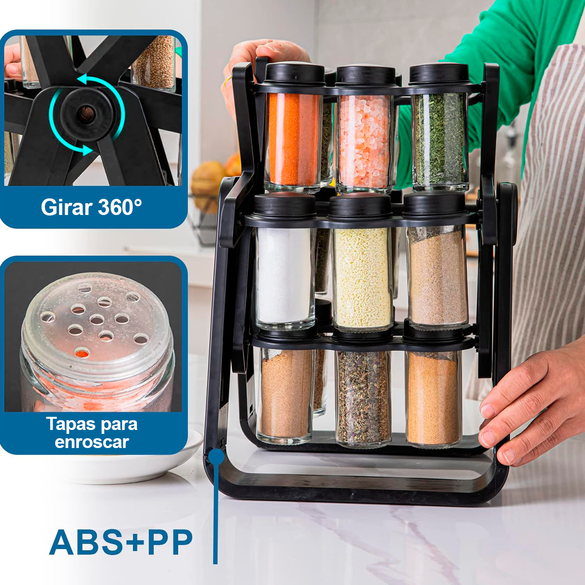 - 🍳 Perfecto para el día a día, ya que deja tus especias siempre a la mano mientras preparas tus recetas.