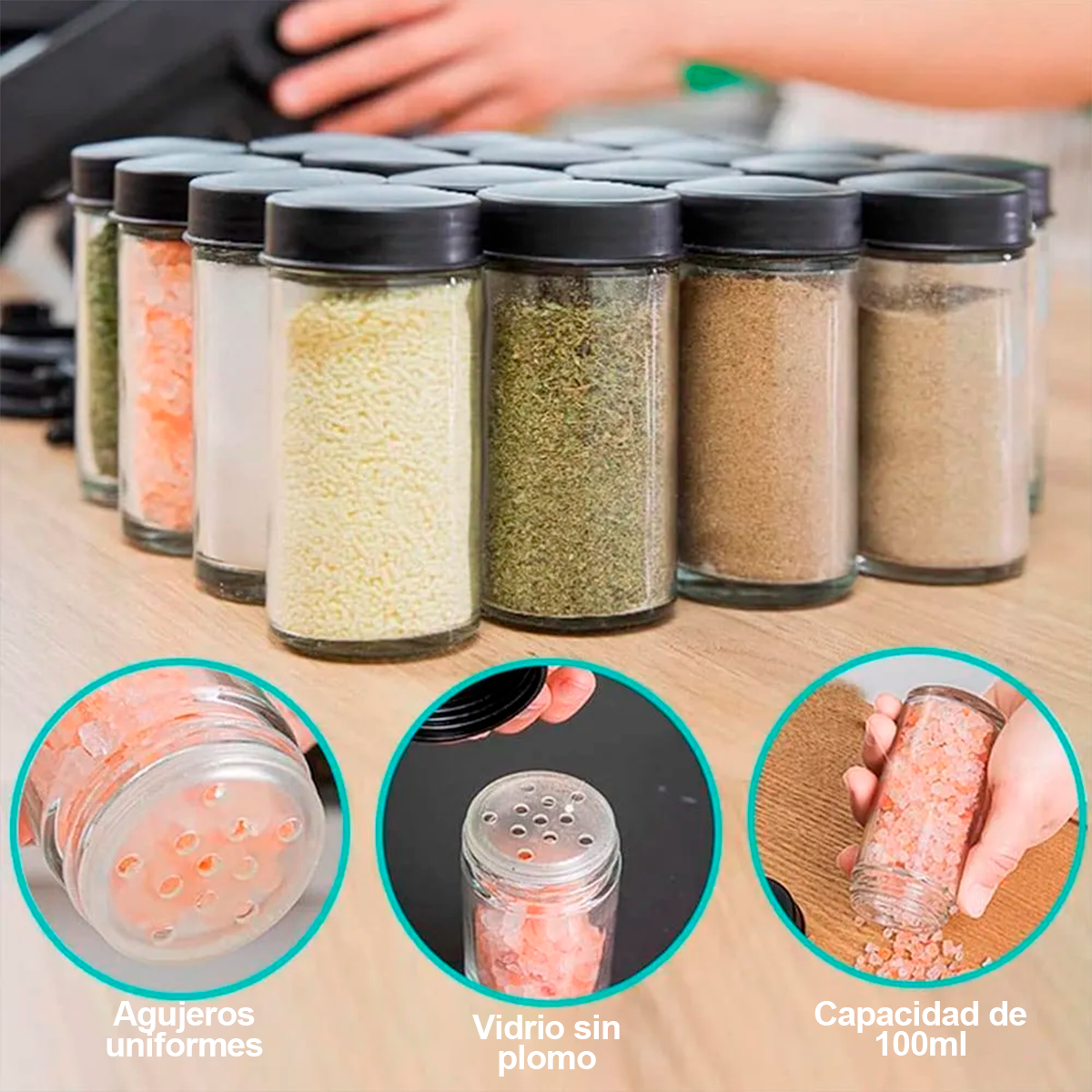 - 🧂 18 frascos de vidrio incluidos