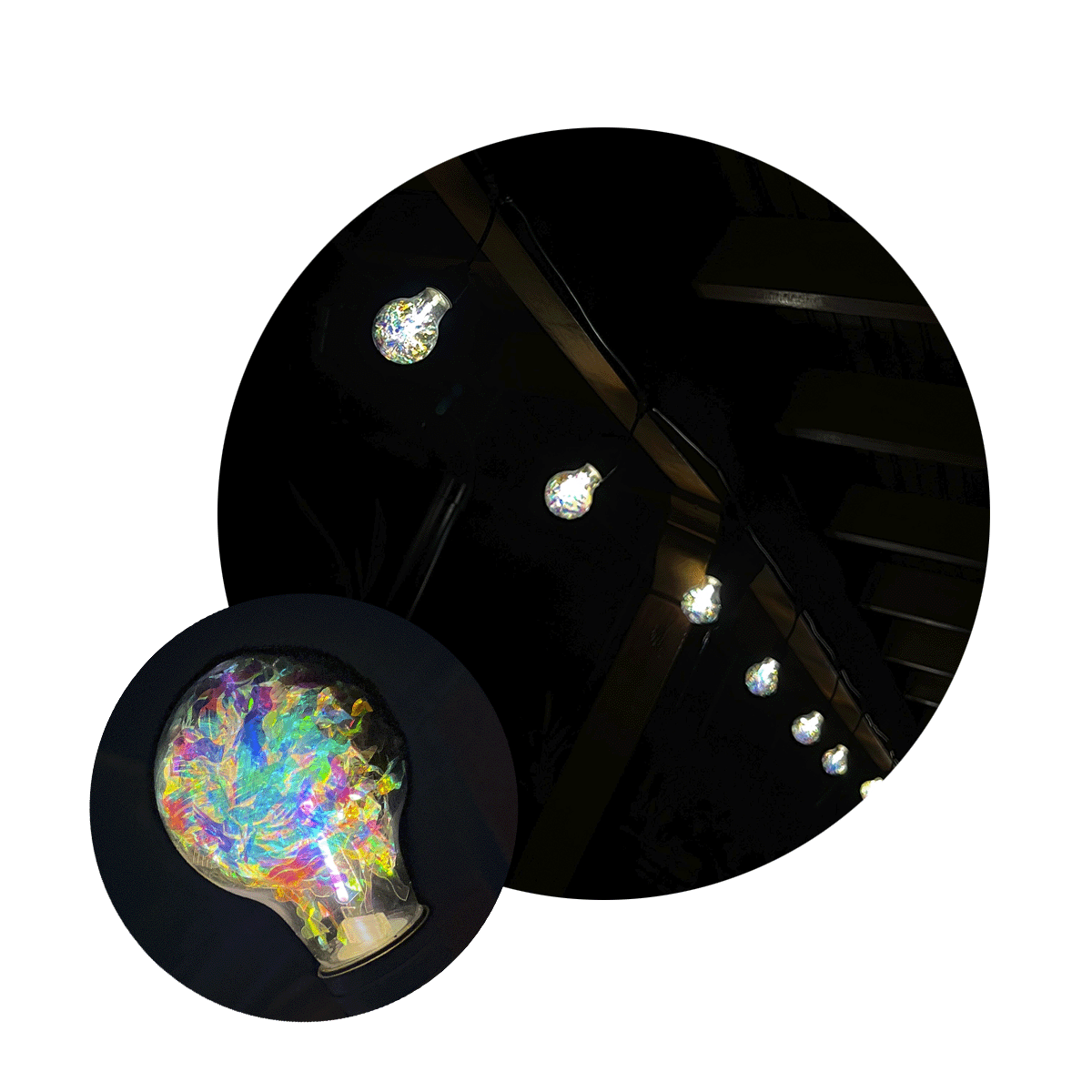 - 🎁 Diseño premium: bombillos transparentes con interior reflectivo tipo arcoíris.