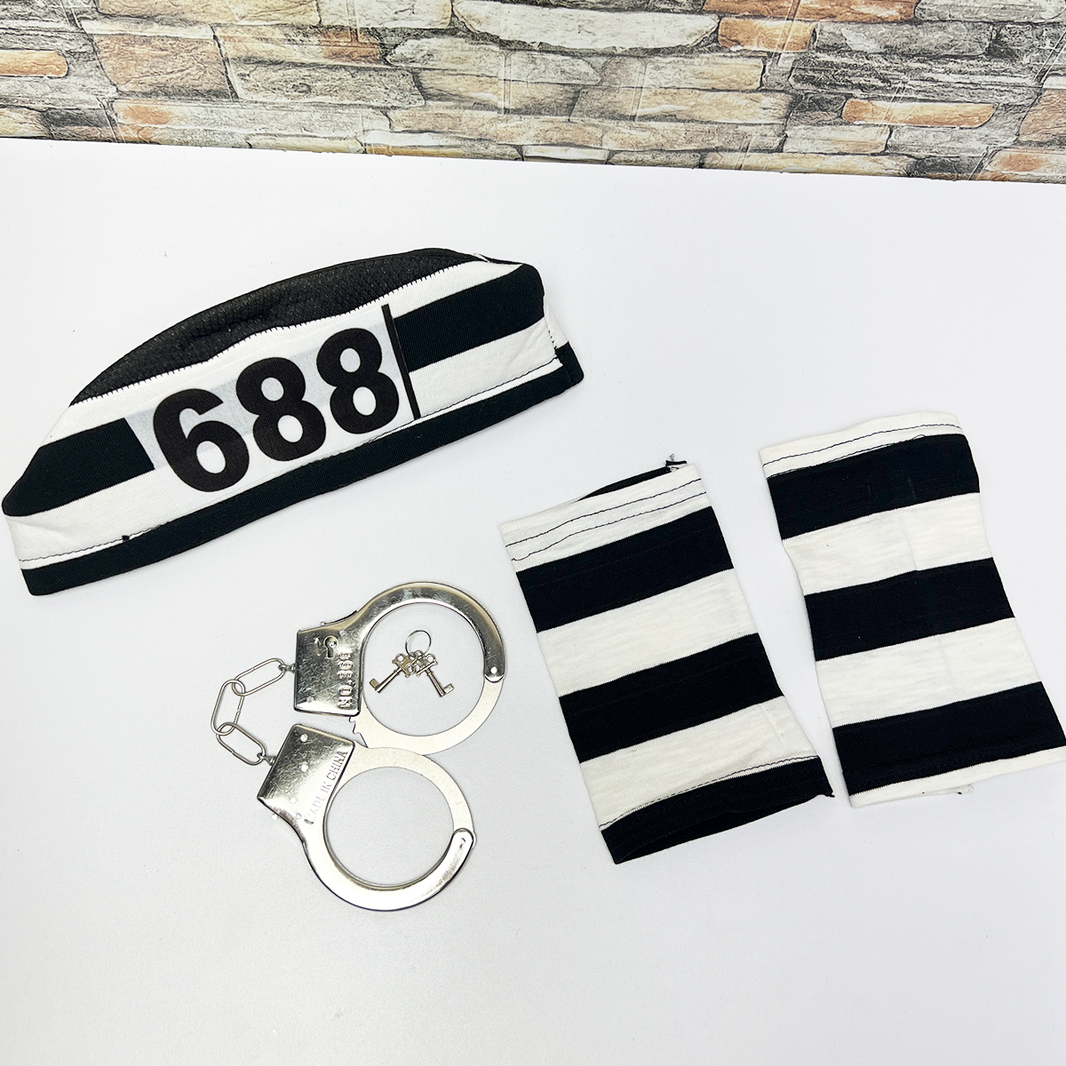 Kit Accesorios Preso Unisex Esposas Gorro y Guantes Halloween Carnaval OFKP01