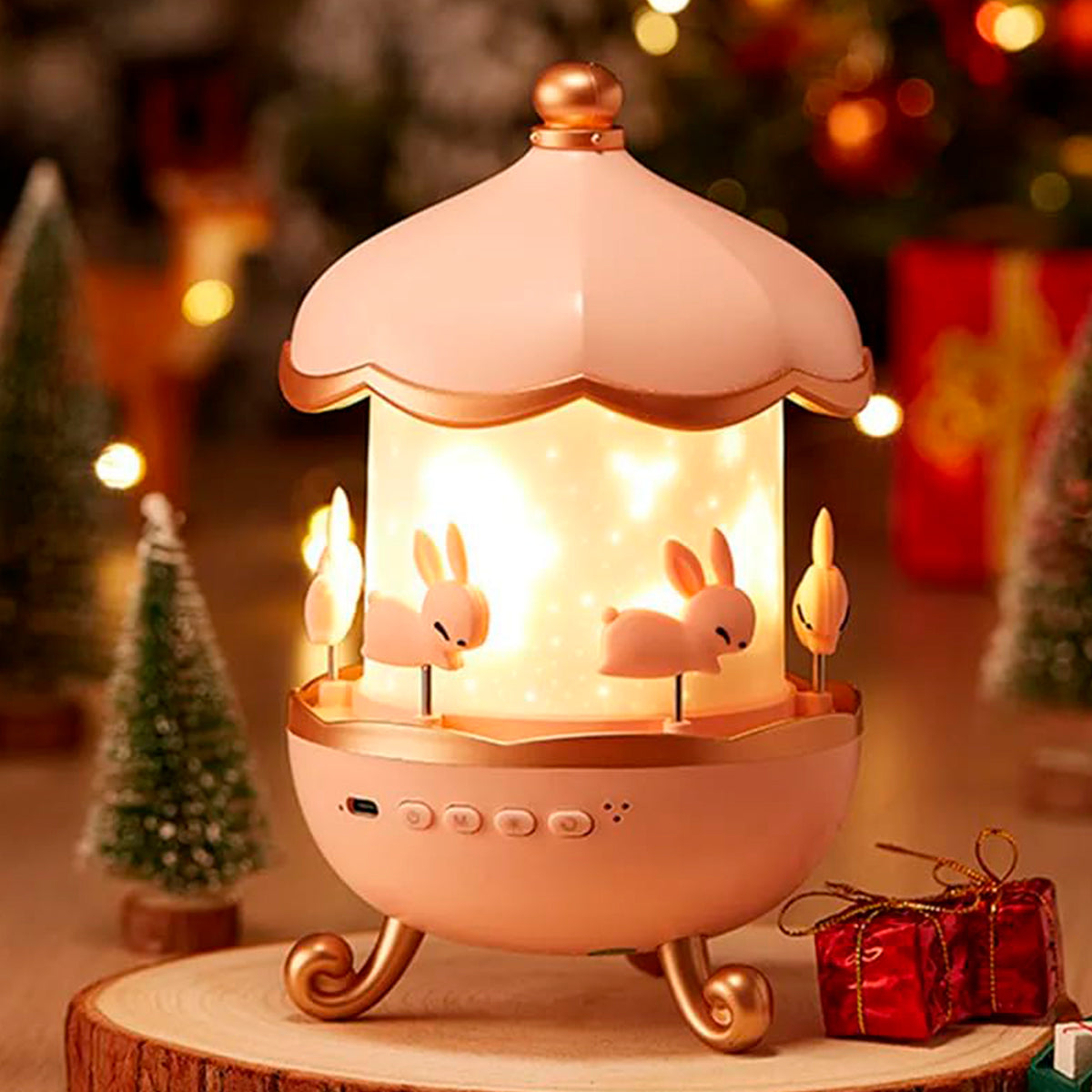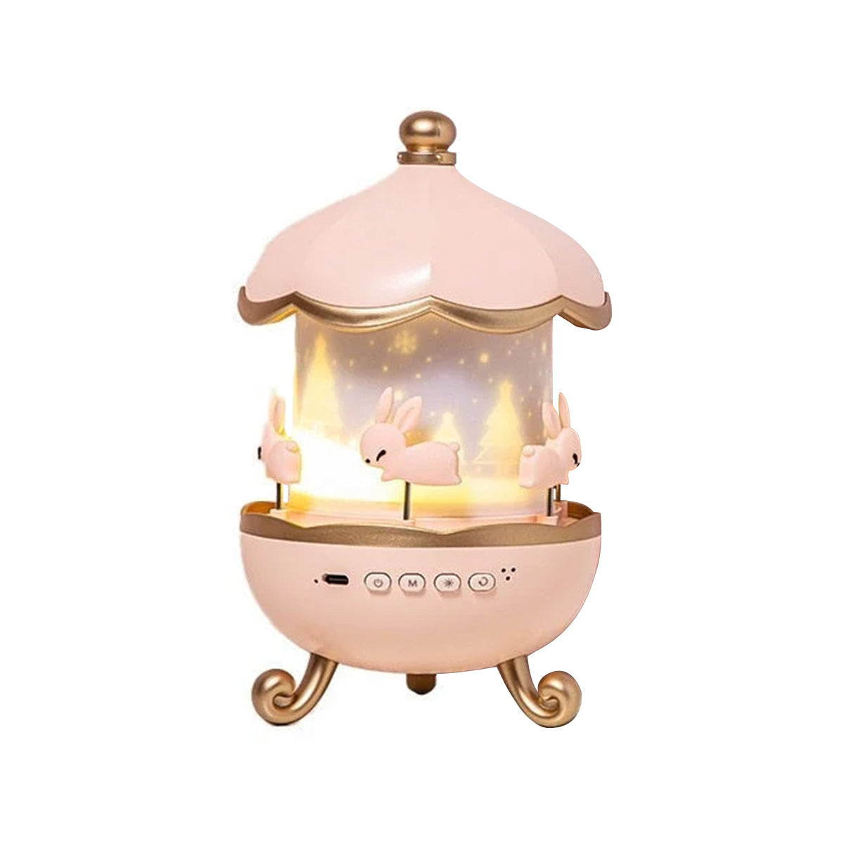 Su forma de carrusel con conejitos le da un toque encantador que enamora a niños y adultos. - 🔋 Recargable por USB tipo C
