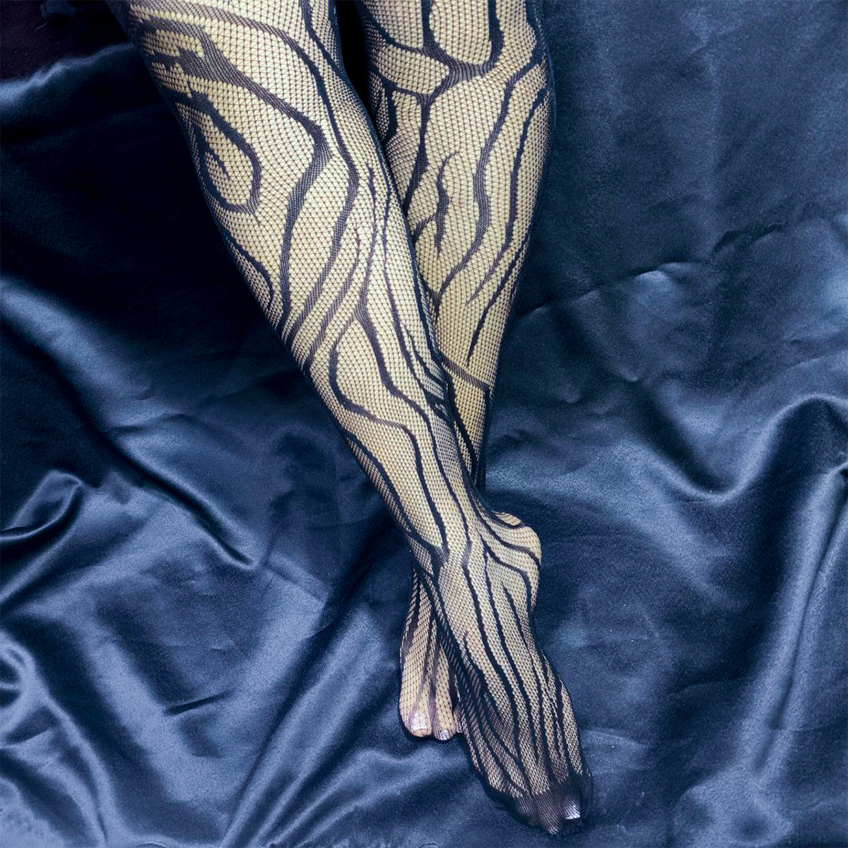 Panty Medias negras de red con diseño abstracto/tribal/minimalista 🖤. Perfectas para Halloween, fiestas, cosplay y moda alternativa.