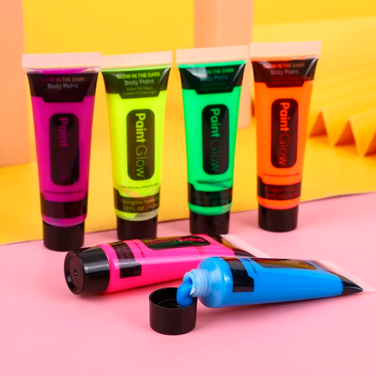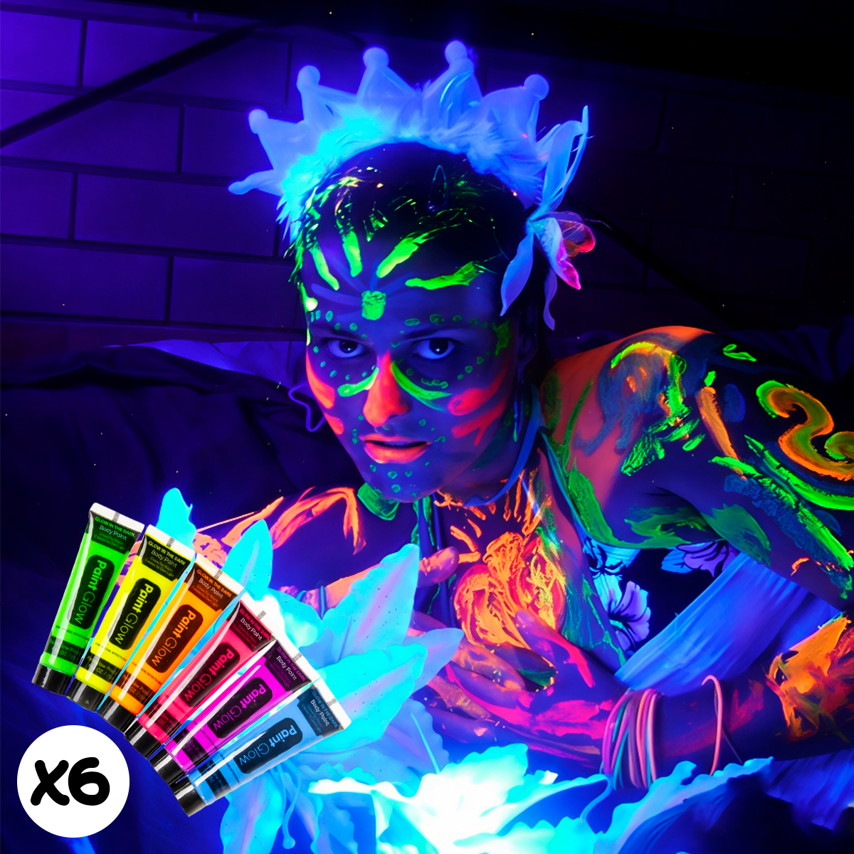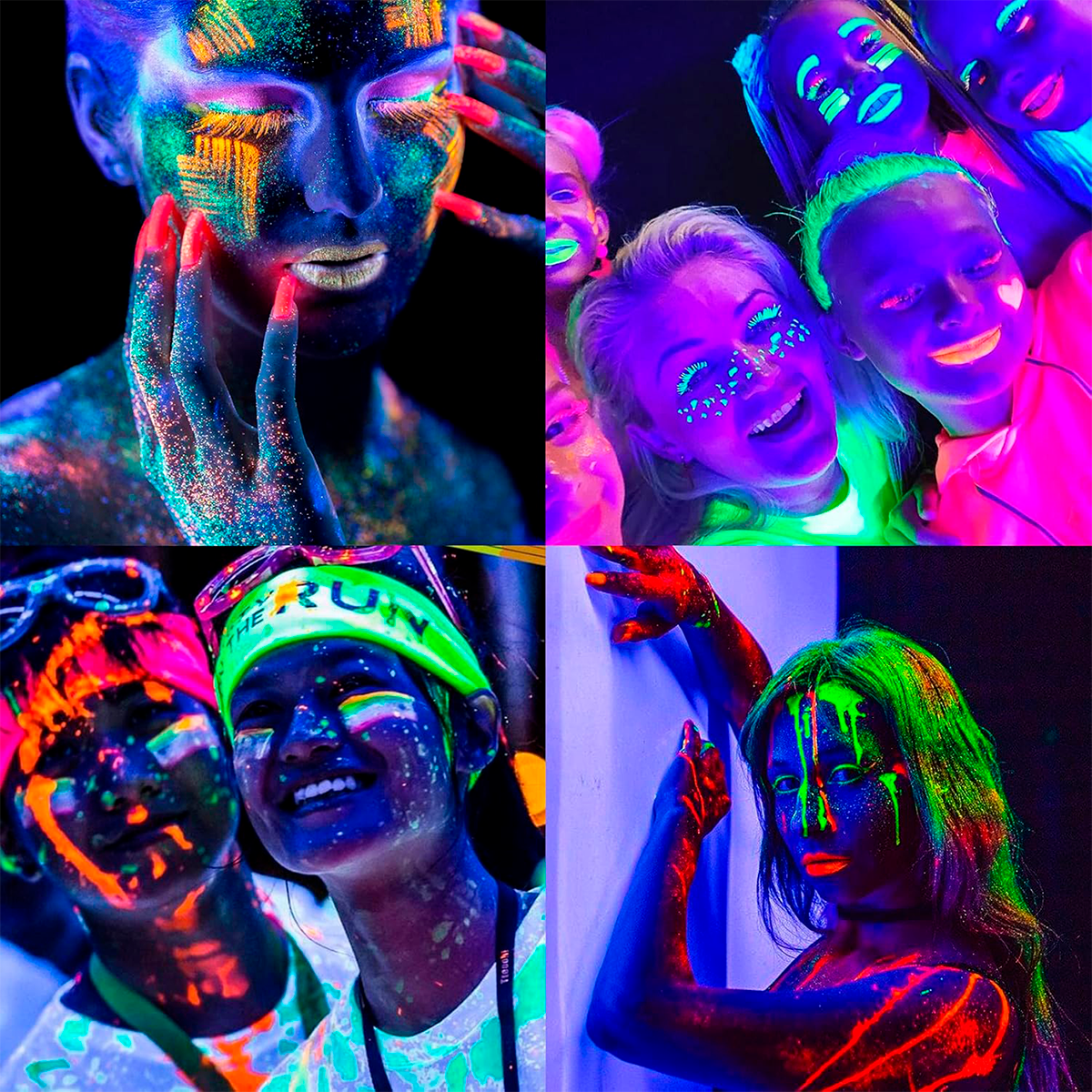 🎨 Brilla en la oscuridad con pintura fluorescente UV para rostro y cuerpo. Ideal para fiestas, Halloween y festivales. 🌙✨