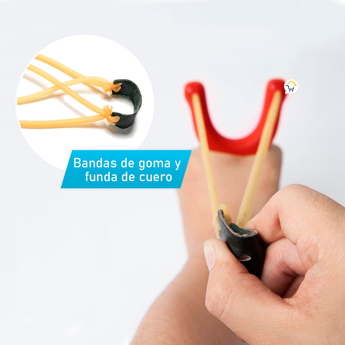 - El punto de conexión de las dos gomas del tirachinas es retazo de cuero, que puede ayudarlo a controlar y lanzar mejor las canicas, y controlar el ángulo de lanzamiento con mayor precisión.