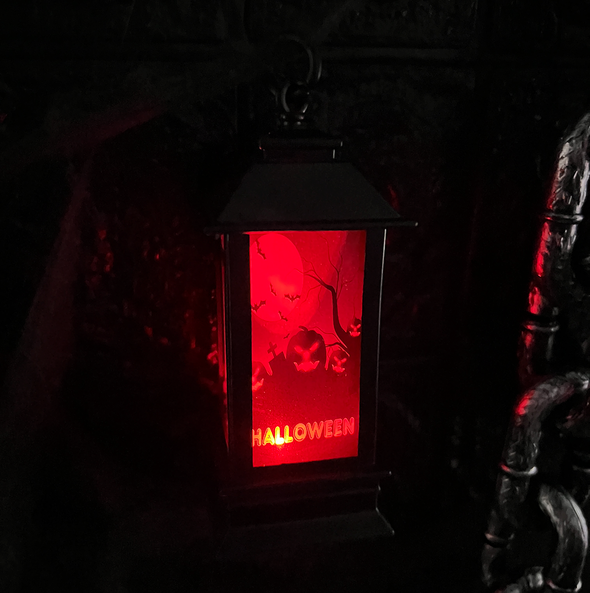 - 🎃 Decoración temática Halloween: faroles con diseños de calabazas, calaveras y escenas espeluznantes.