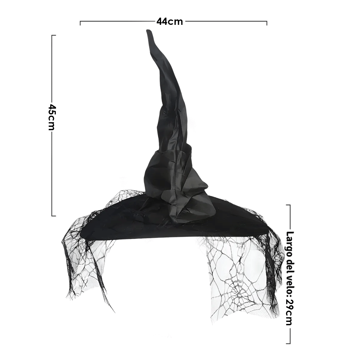 - El sombrero de bruja con velo añade un toque de misterio y elegancia a tu disfraz, haciéndote destacar en cualquier fiesta de halloween.